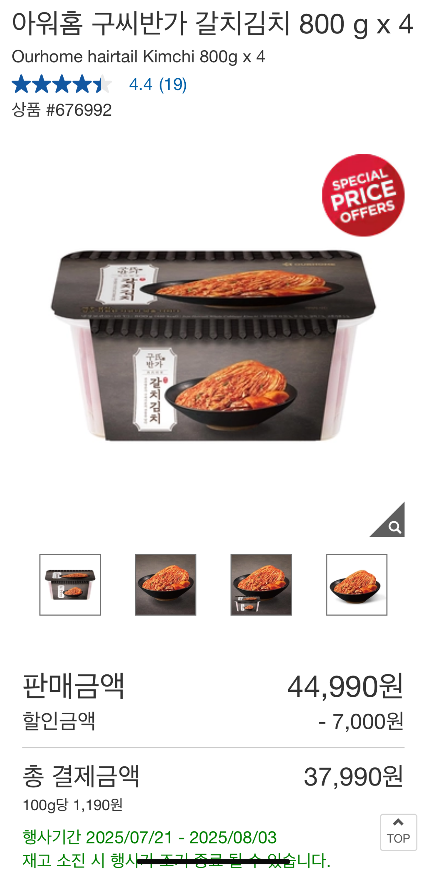 [코스트코] 아워홈 구씨반가 갈치김치 800G X 4EA 37,990원 (무배) > 국내핫딜