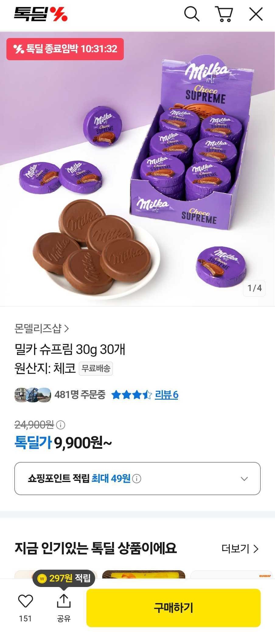[카카오] 밀카 슈프림 30g 30개 (9,900원/무배) > 국내핫딜
