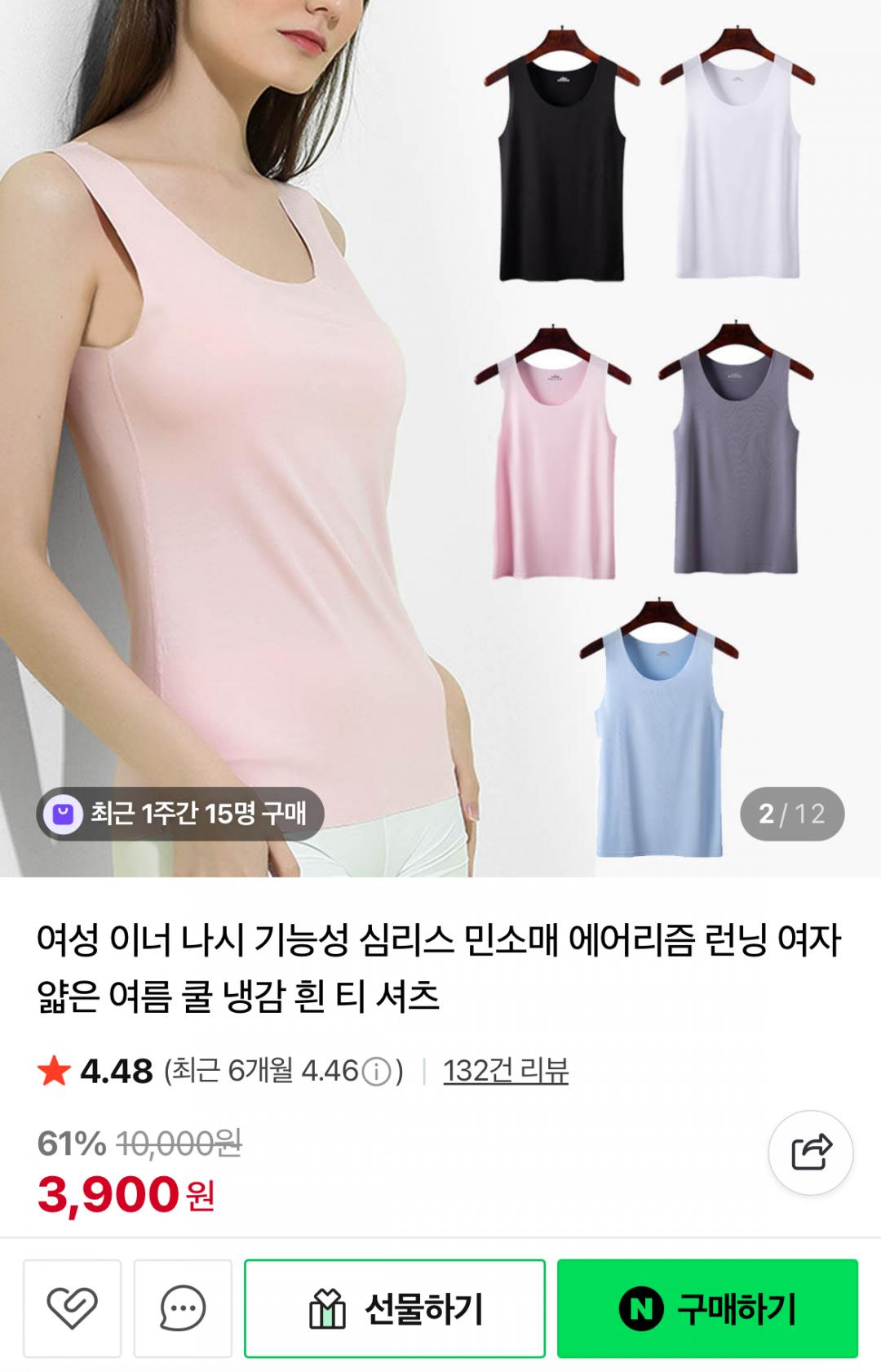 [네이버] 여성 심리스 냉감나시 (3,900원/유배)