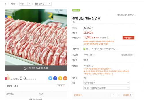 [우체국쇼핑] 한돈 냉장 삼겹살 1kg (17,680원/무료배송) > 국내핫딜