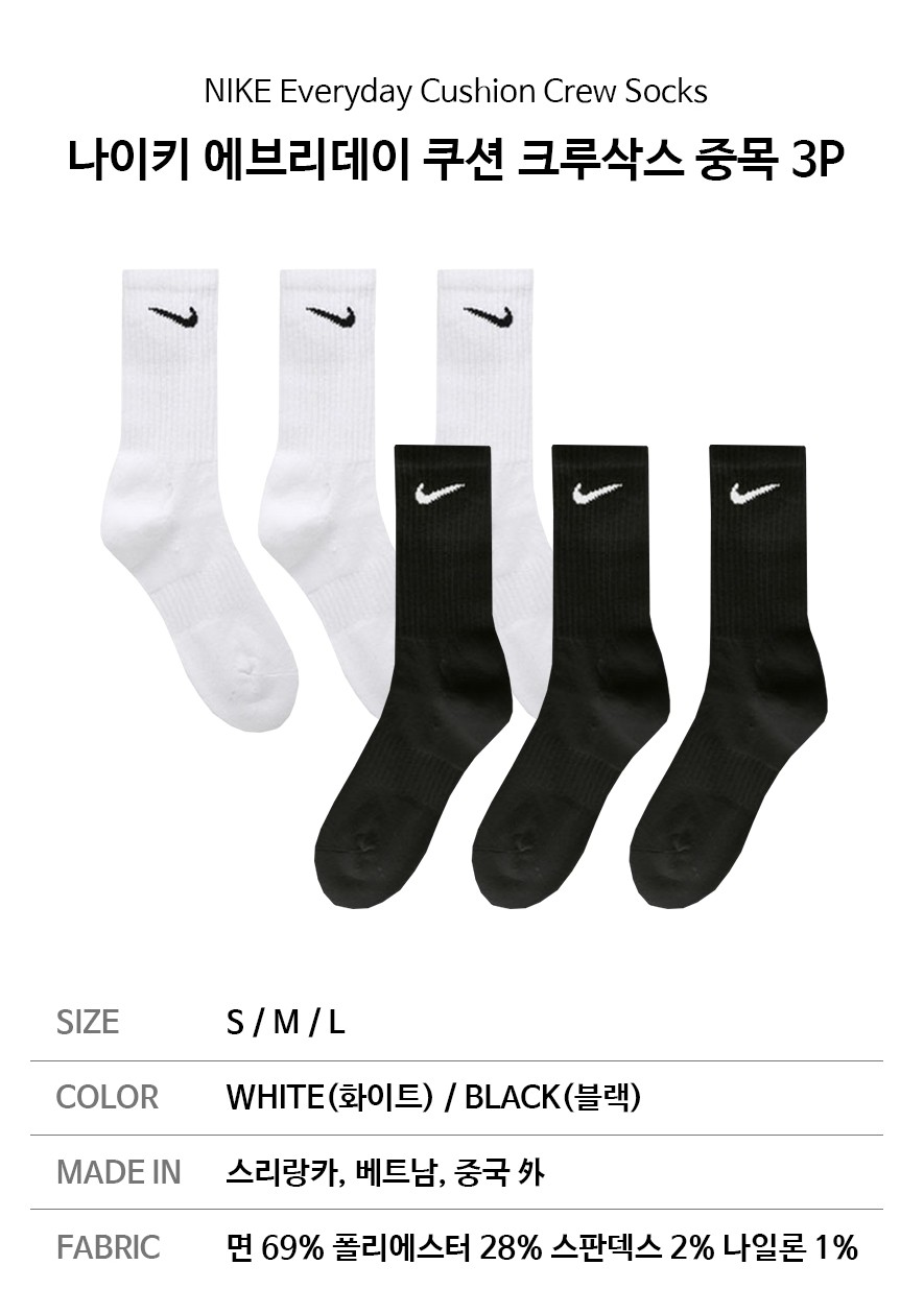 [지마켓] 나이키양말 에브리데이 쿠션 크루삭스 중목양말 3켤레 세트 (11,360원/무배) > 국내핫딜