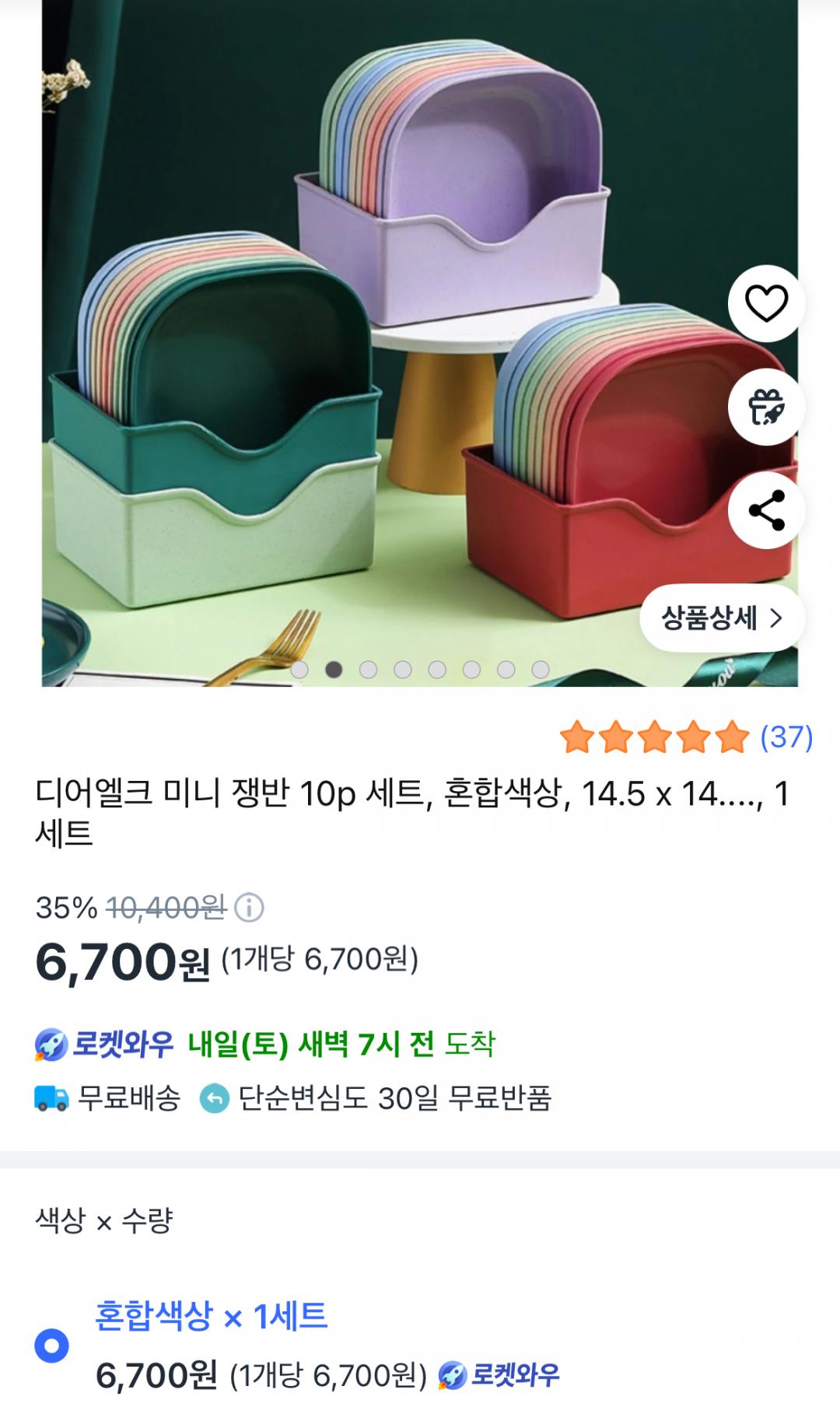 [쿠팡] 디어엘크 미니쟁반 10p 세트 (6,700원/무배)