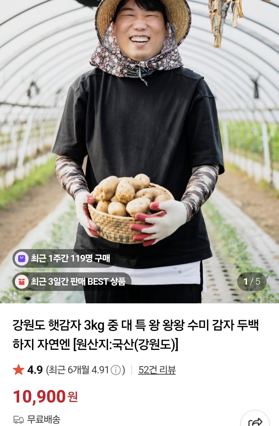 [네이버] 강원도 햇감자 3kg (중~왕왕사이즈 선택) (10,900원/무료) > 국내핫딜