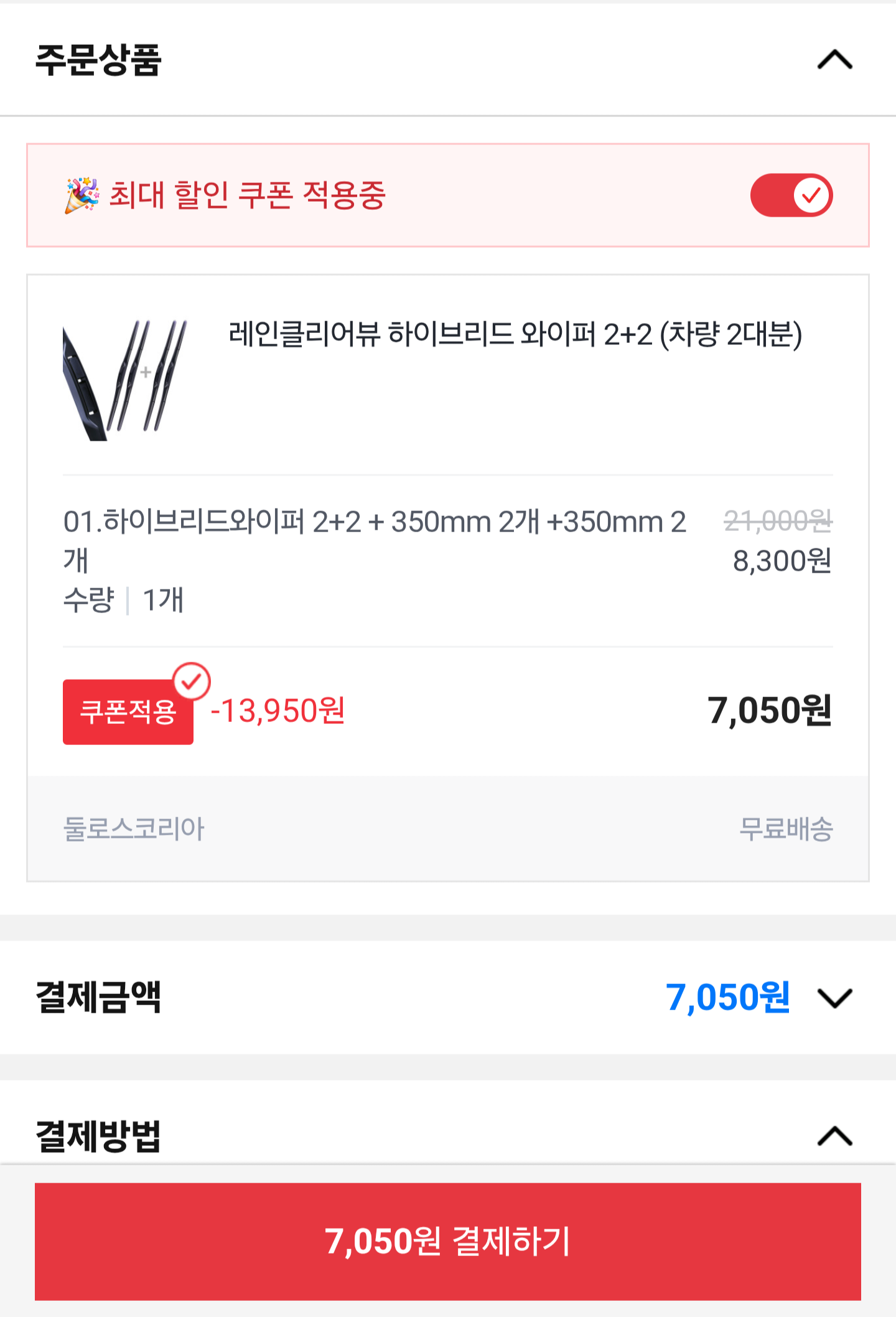 [옥션] 레인클리어뷰 하이브리드 와이퍼 2+2세트 (7,880원/무료)