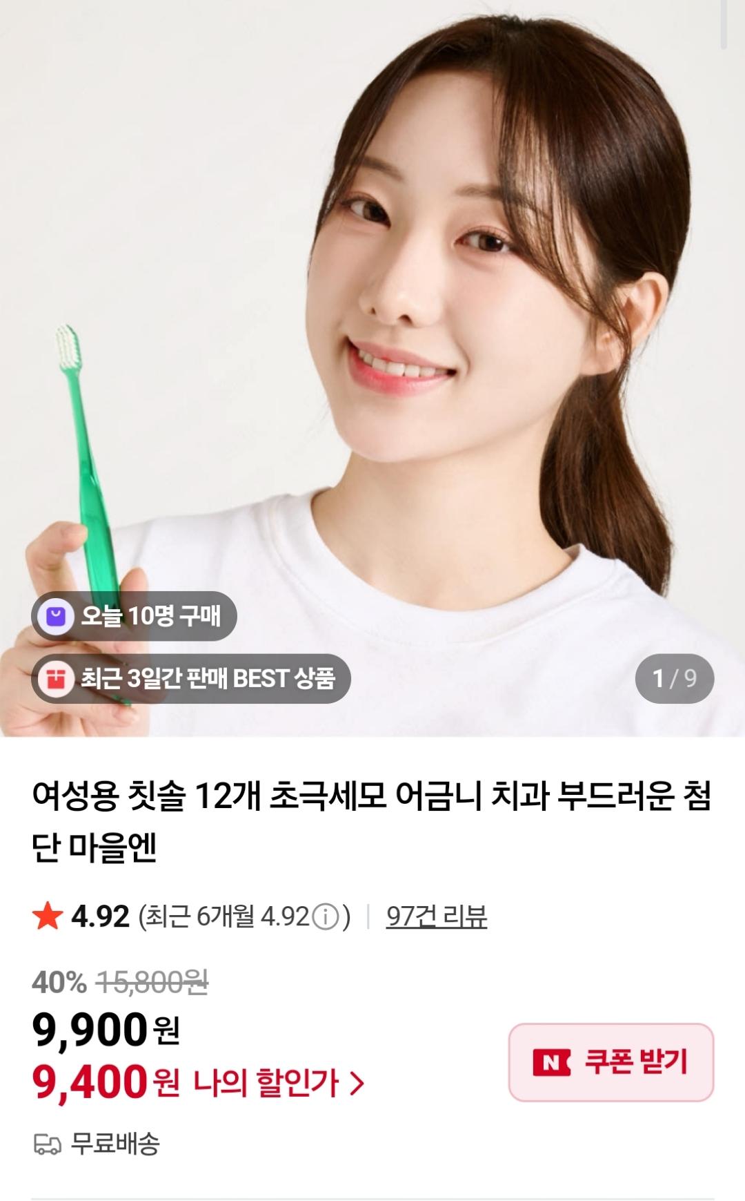 [네이버] 마을엔 치과칫솔 12개 (9,400원 / 무료)