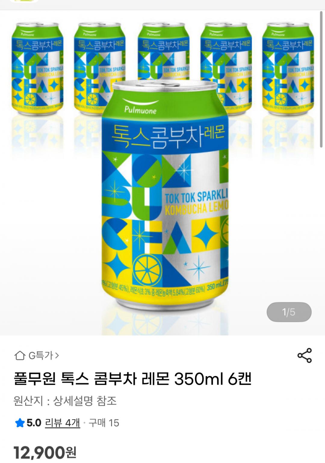 [지마켓] 풀무원 톡스콤부차 레몬 350ml 6캔 (12,900원/유배) > 국내핫딜