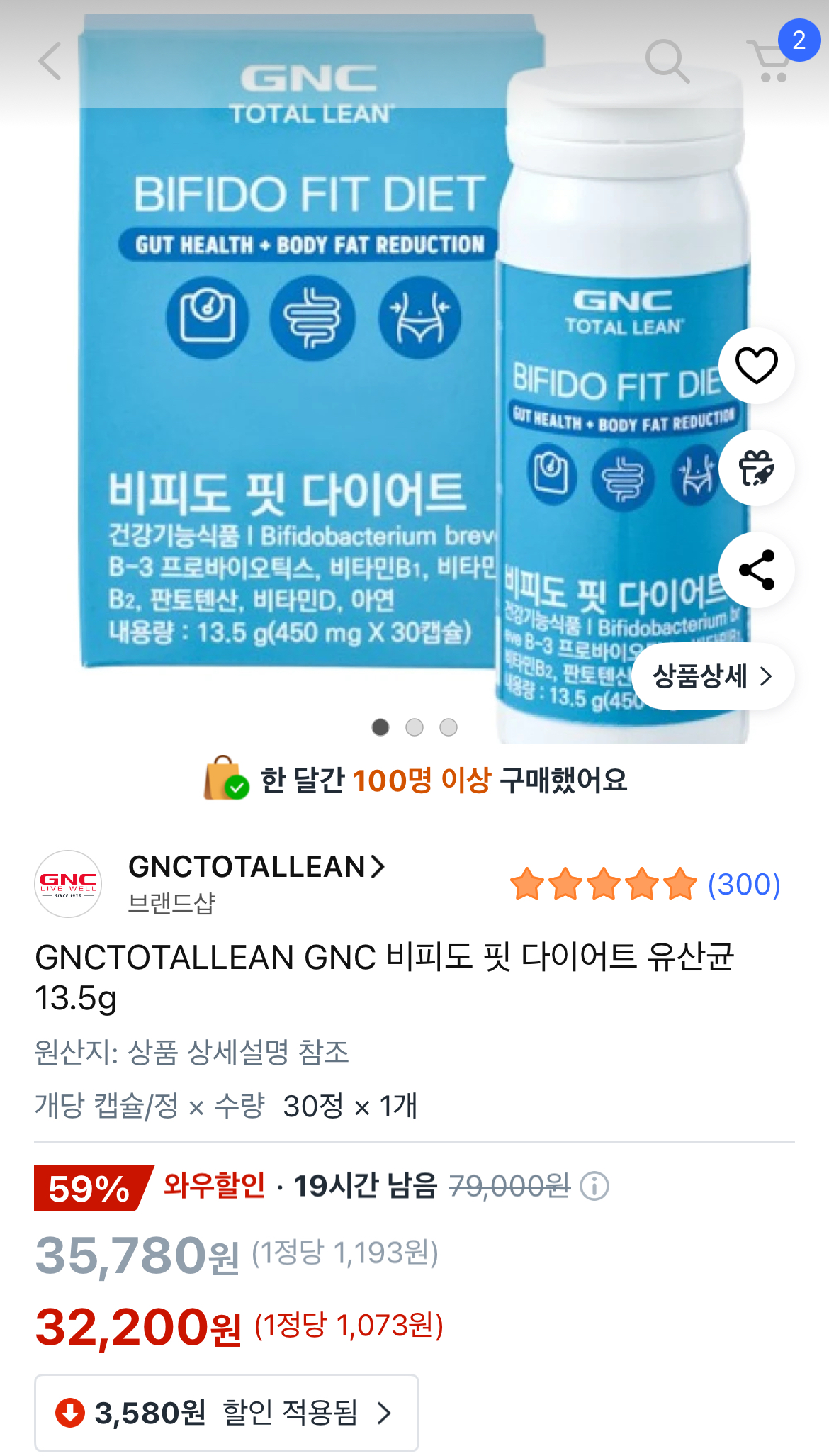 [쿠팡] GNC 비피도 핏 다이어트 유산균 (32,200원/무배)