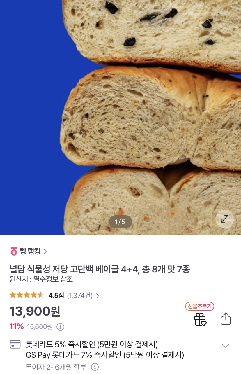 [GS샵]식물성 저당 고단백 베이글 4+4(13,900원/무료) > 국내핫딜