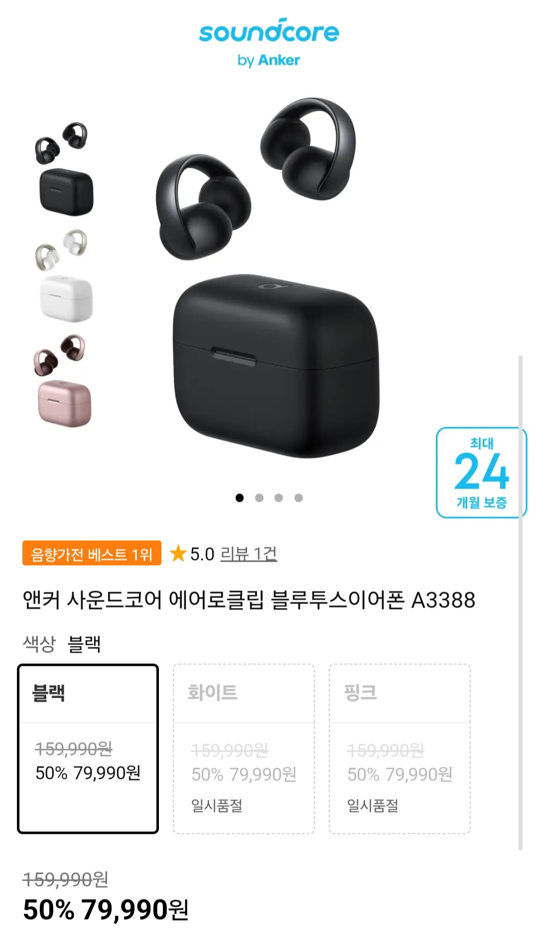 앤커 사운드코어 에어로클립 가격 괜찮게 떴네요