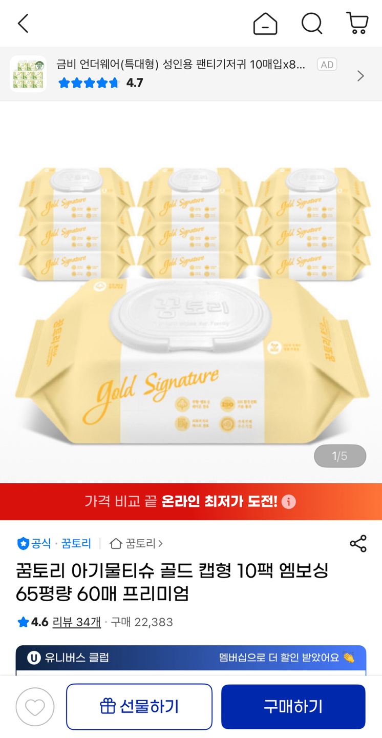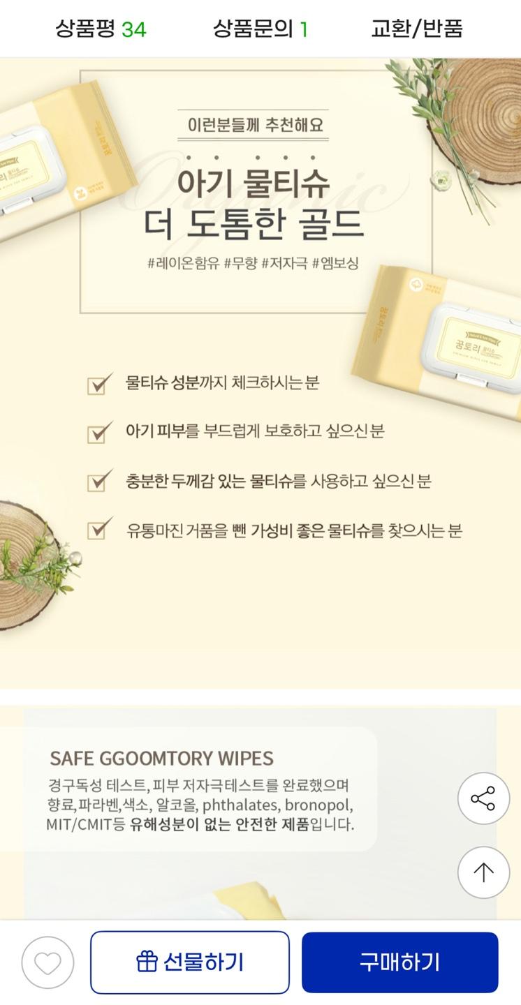 [지마켓] 꿈토리 엠보싱 65평량 아기물티슈 60매 10팩 (유클 9,320원/무료) > 국내핫딜
