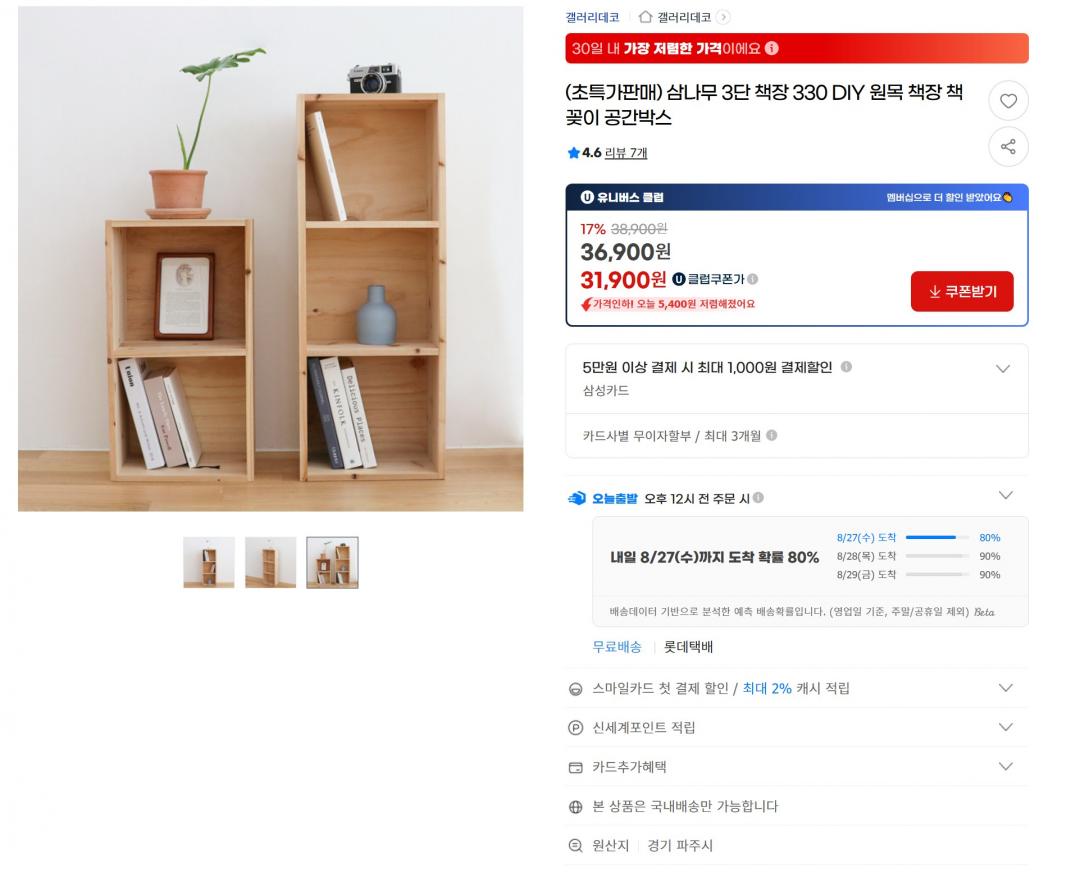 [지마켓] 330 DIY 원목 책장 책꽂이 공간박스 (31,900원/무배) > 국내핫딜