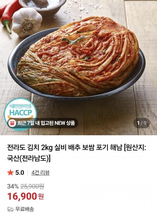 [네이버] 전라도 실비김치2kg (16,900원/무료) > 국내핫딜