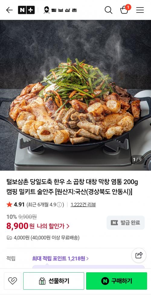 [네이버] 당일도축 한우 소 곱창 대창 막창 염통 (8900/4만무배))