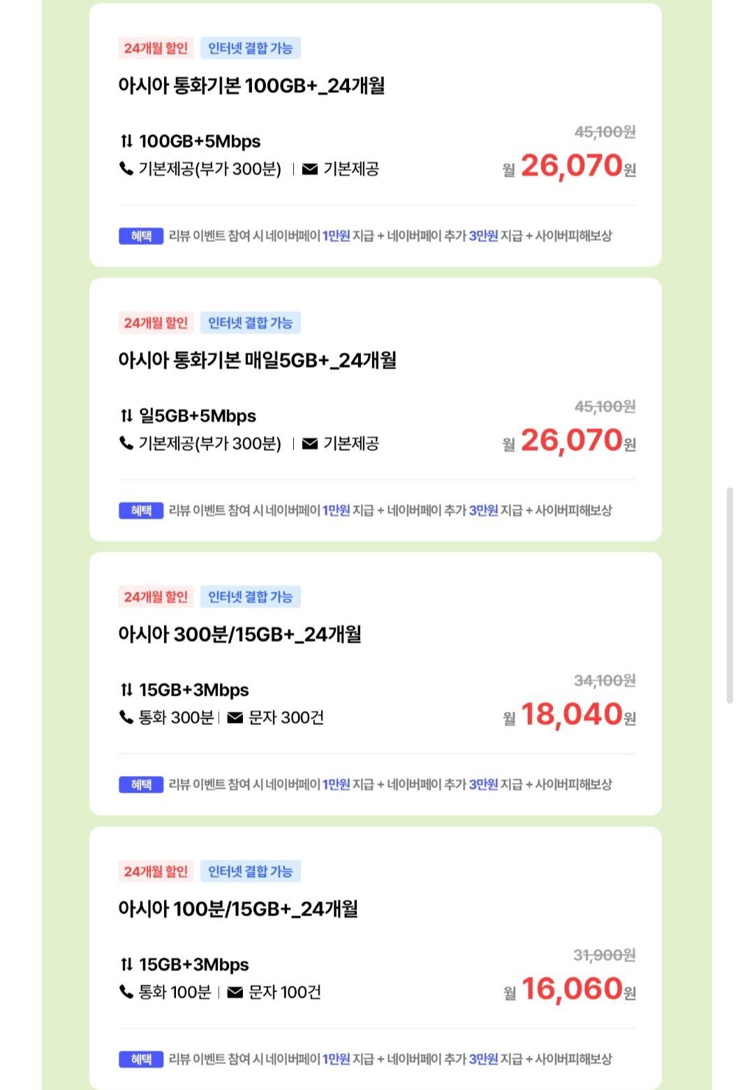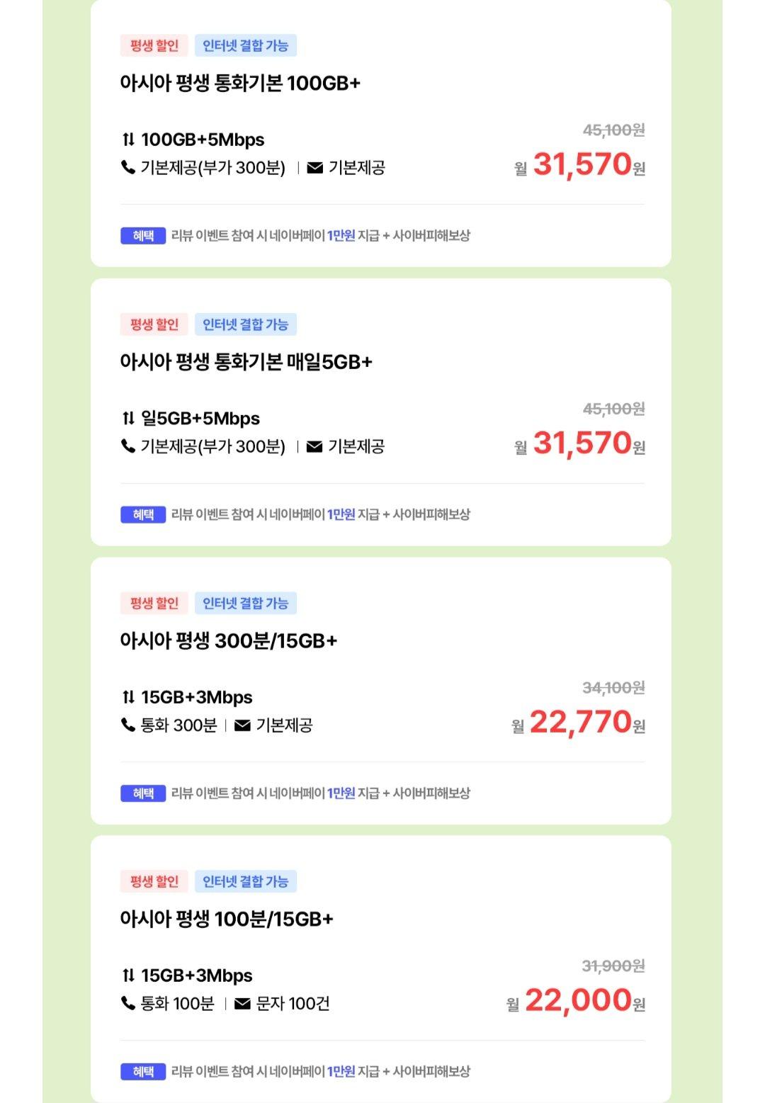 [아시아모바일] 알뜰폰 100GB+ 요금제 (평생 31,570원 /배송비 무료) > 국내핫딜