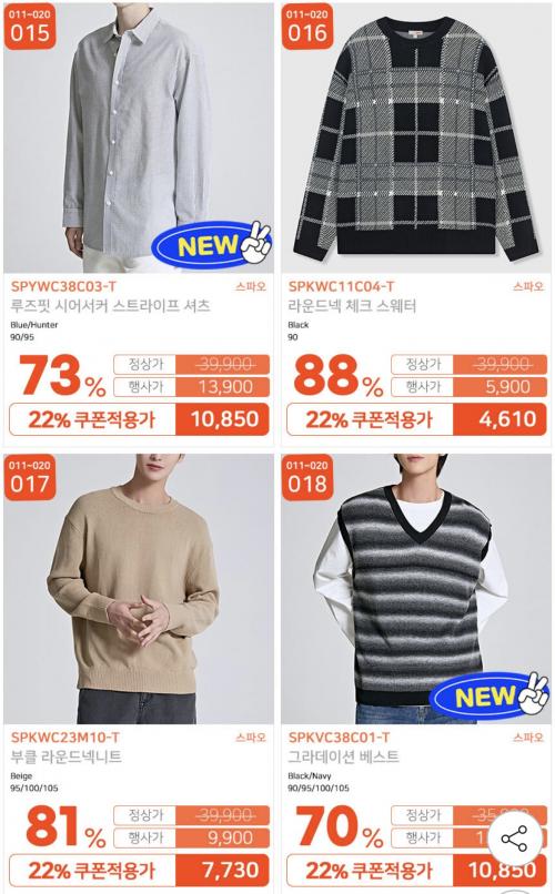 니트, 스웨터도 사이즈가 좀 빠지긴했는데