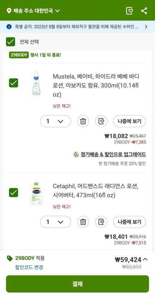 아이허브) 아기로션, 바디로션, 바디워시 등 29% 할인! (9/3오늘만!)