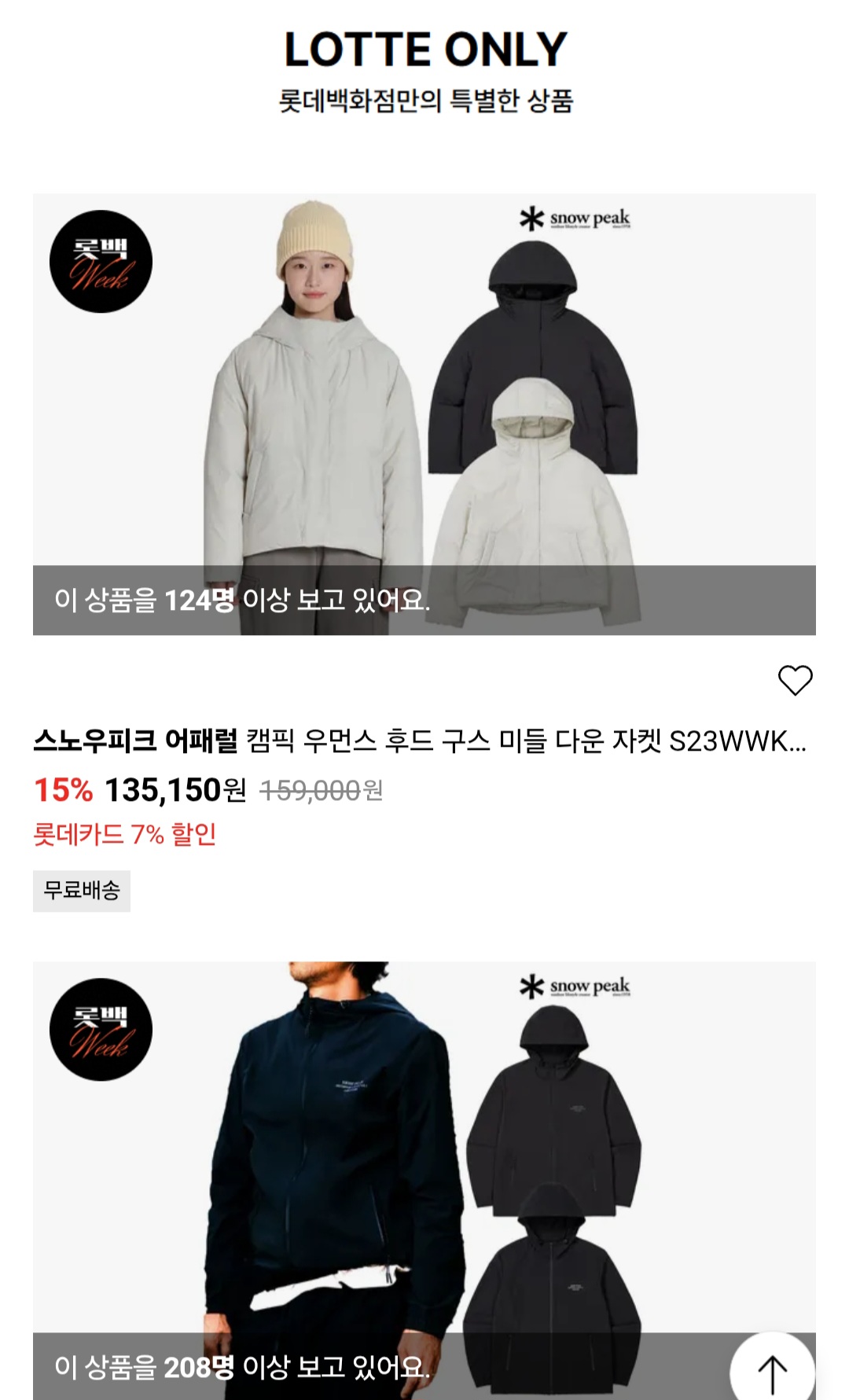 스노우피크의 인기 상품 남성 패딩을 발견했는데,
