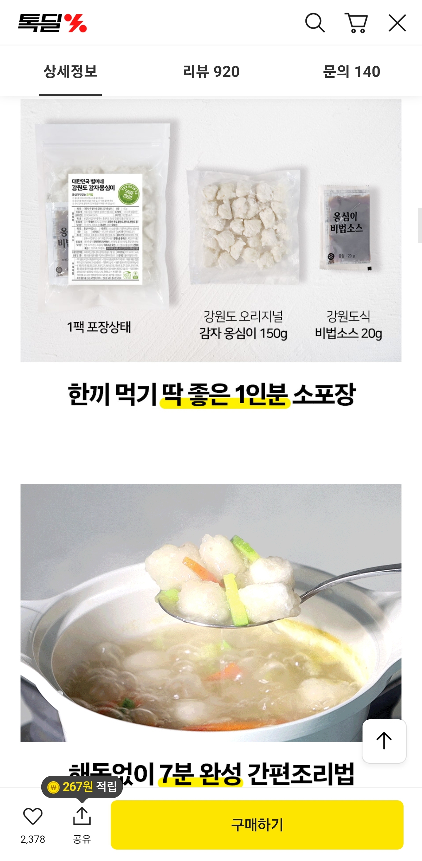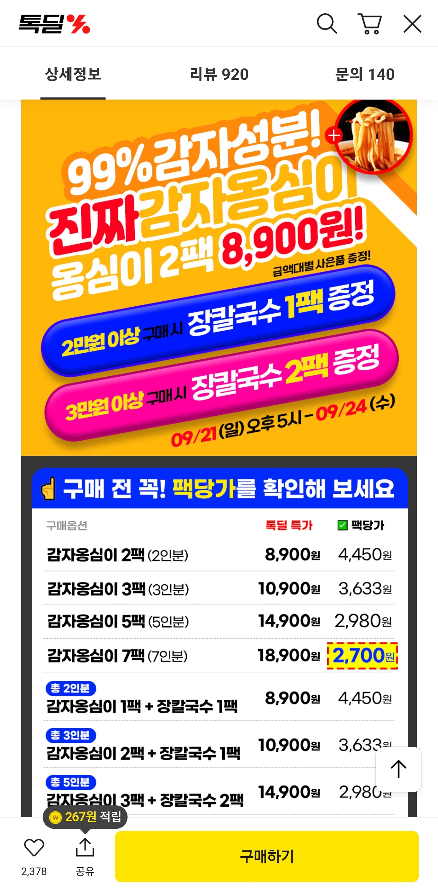 감자옹심이 2팩 8,900원으로 팩당 4450원인데