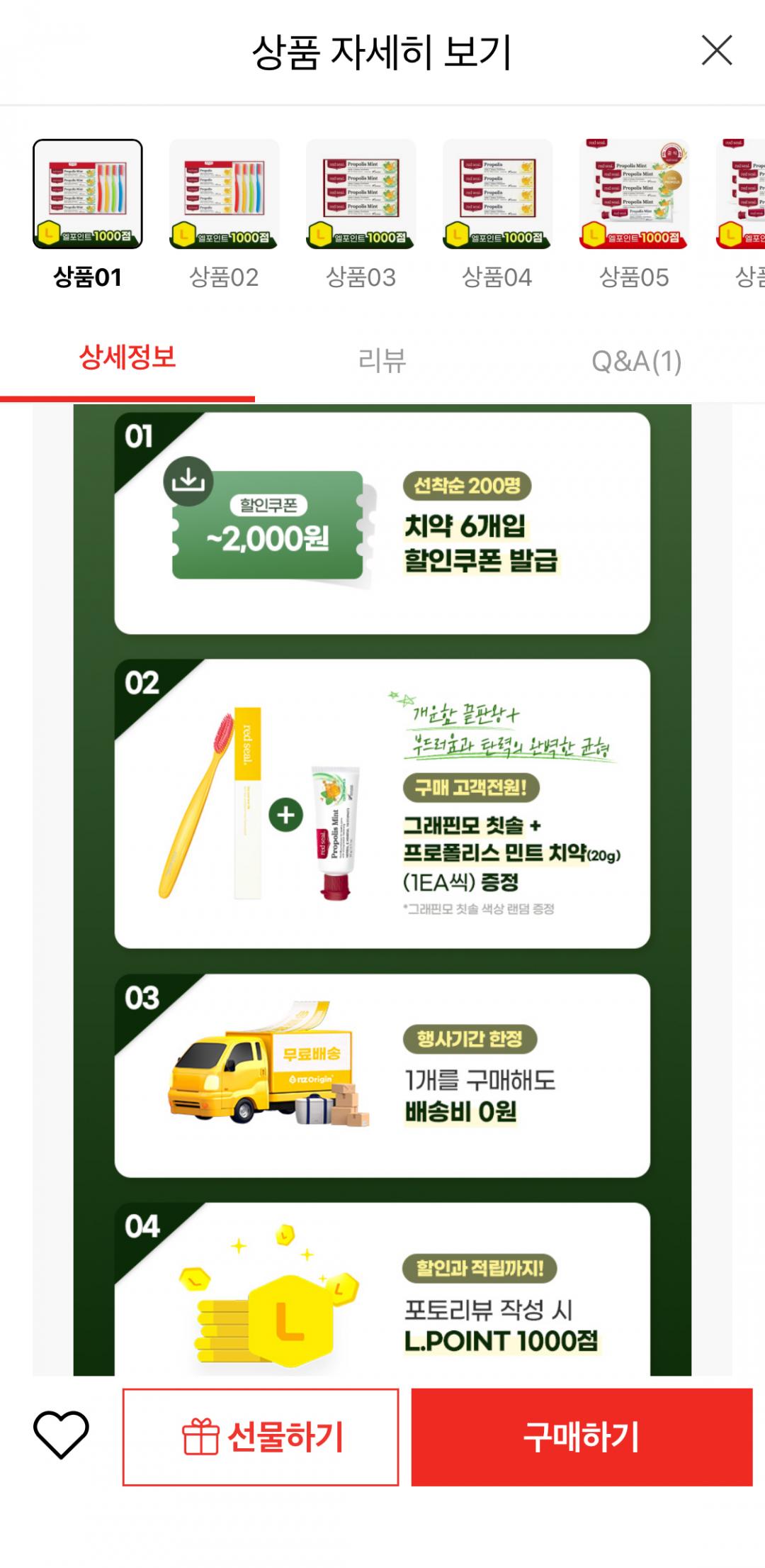 [롯데온] 레드씰 프로폴리스 민트치약 5개+칫솔 4개 선물세트 (24,900원/무료)