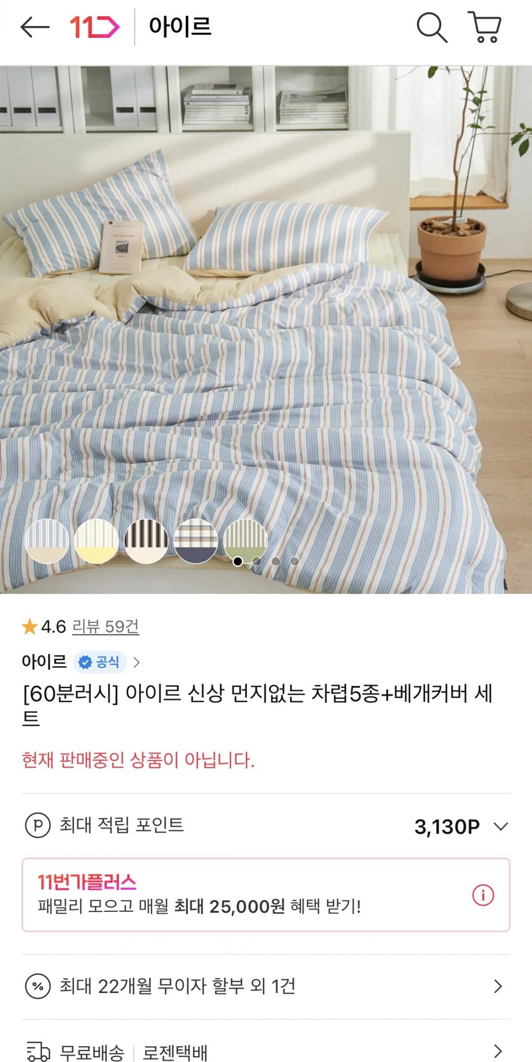 [11번가] 60분러시 아이르 먼지없는 차렵 5종+베개커버 세트 (32,900원/무료)