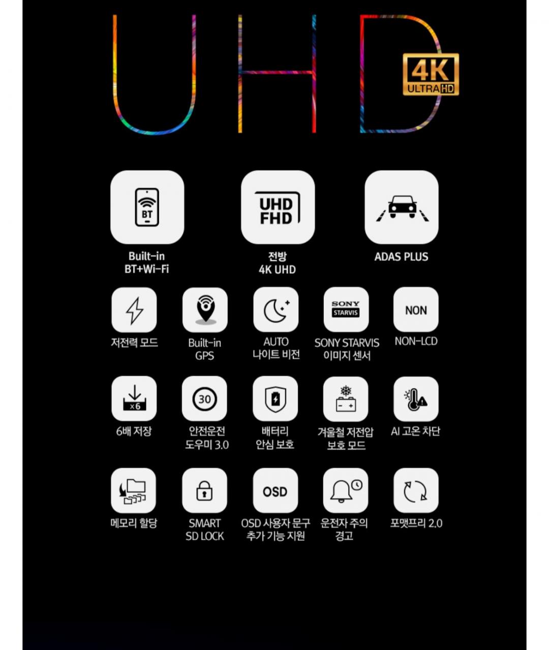 4K UHD 화질에 GPS 빌트인 모델이고 스마트폰 연동가능해서 영상 확인이나 설정도 간편합니다