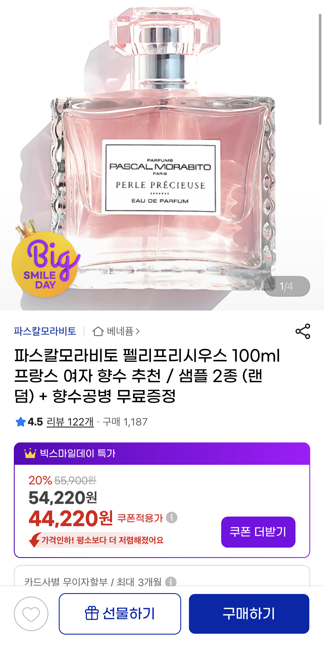 [지마켓] 여자향수 파스칼모라비토 펠리프리시우스 100ml + 샘플 2종 (랜덤) + 향수공병 (44,220원/무배) > 국내핫딜
