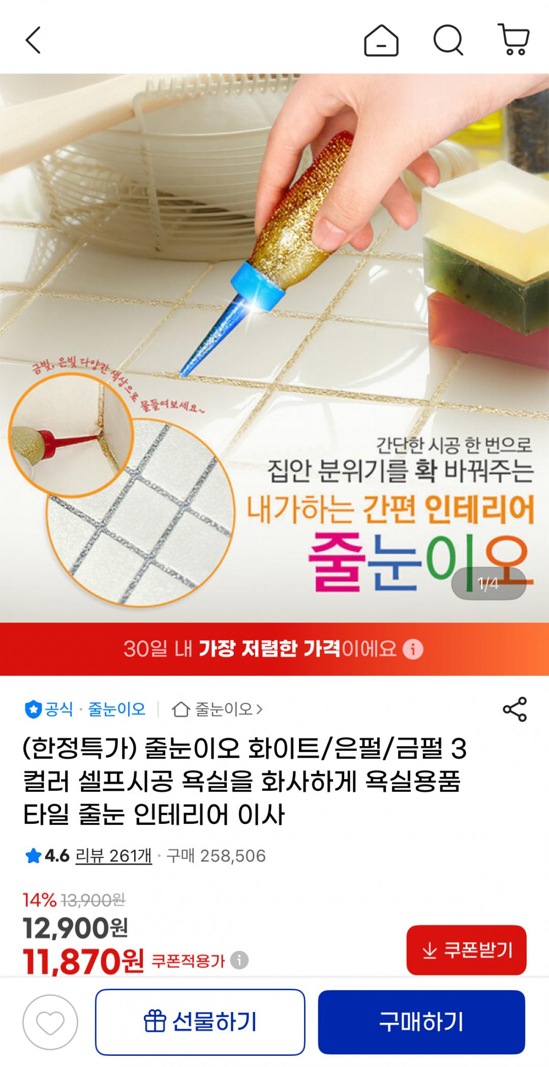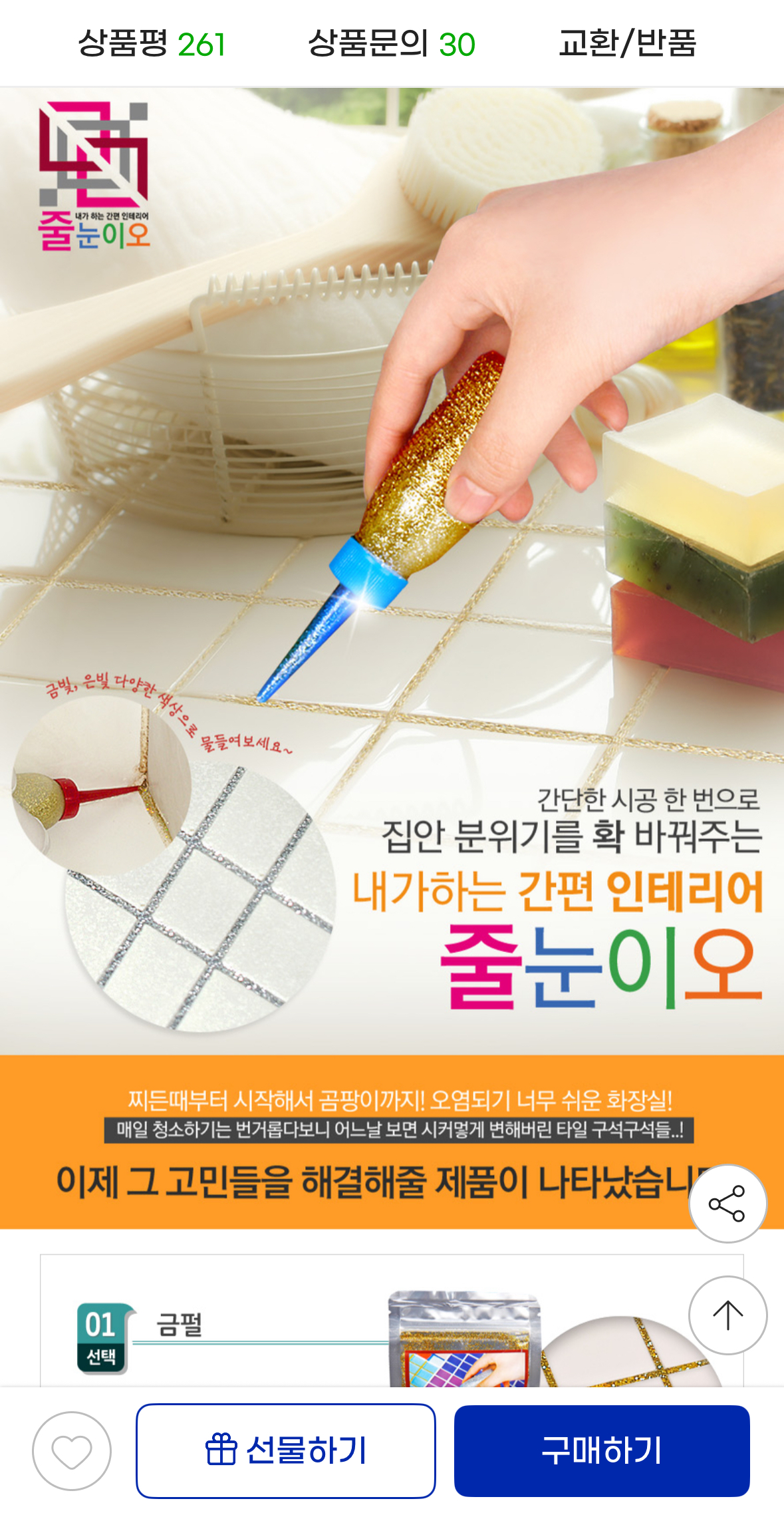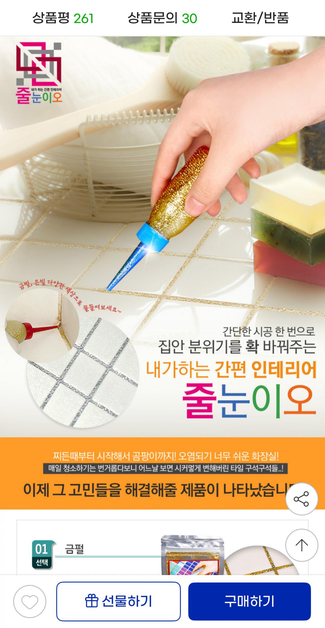 [지마켓] 줄눈이오 셀프 줄눈 시공 화이트/은펄/금펄 (11,870원/무배) > 국내핫딜