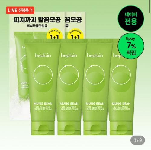 [네이버] 비플레인 녹두 약산성 클렌징폼 100ml 4개 (29,800원/무배)