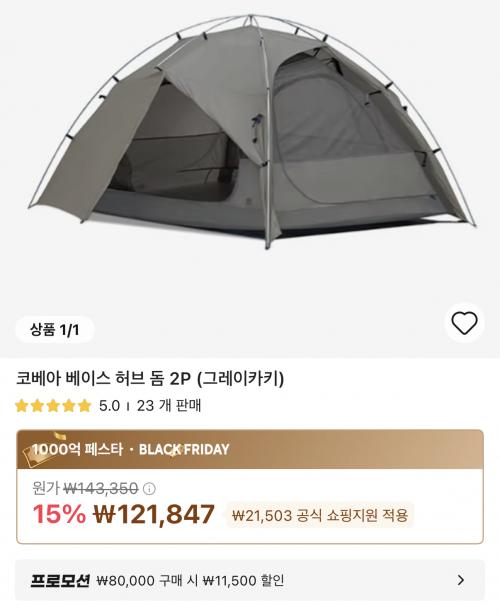 [알리] 코베아 베이스 허브 돔 2P (109,816원/무료)