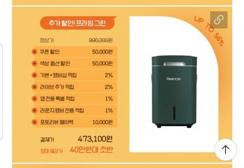 린클 프라임 그린 색상이 새로 나왔는데 런칭 기념 그린색상 5만원 할인 들어가네요.