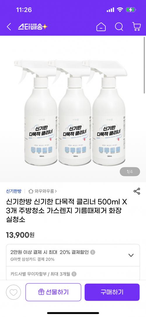 [지마켓] 신기한방 신기한 다목적 클리너 500ml X 3개 (가격/배송비) > 국내핫딜