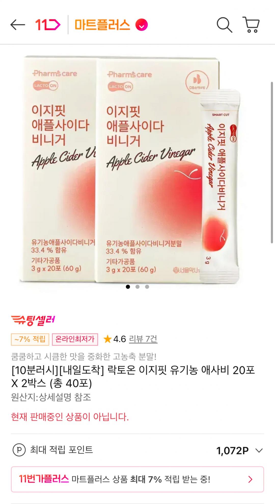 [11번가]10분러시 락토온 이지핏 유기농 애사비 20포 2박스 (12,900원/무료) > 국내핫딜