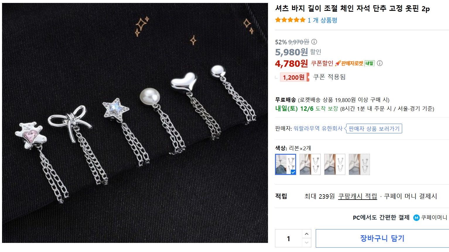 가격도 저렴해서 가볍게 하나사두면 여기저기 쓸일많습니다자석방식이라 탈부착 빠르고 옷감손상없는게 장점이네요