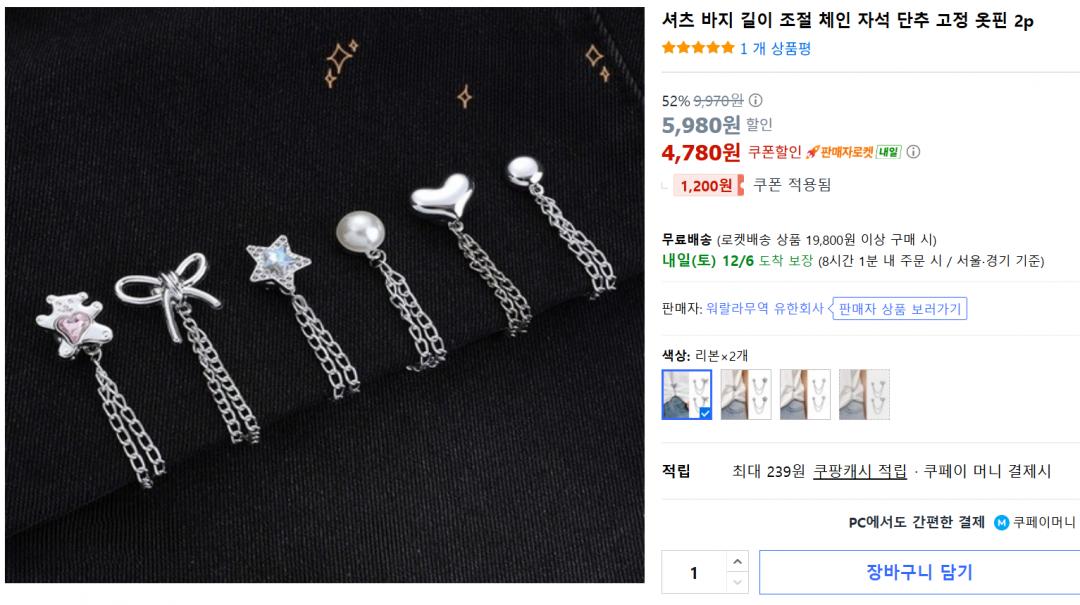 옷길이 애매할때쓰는 자석체인단추 고정핀이에요