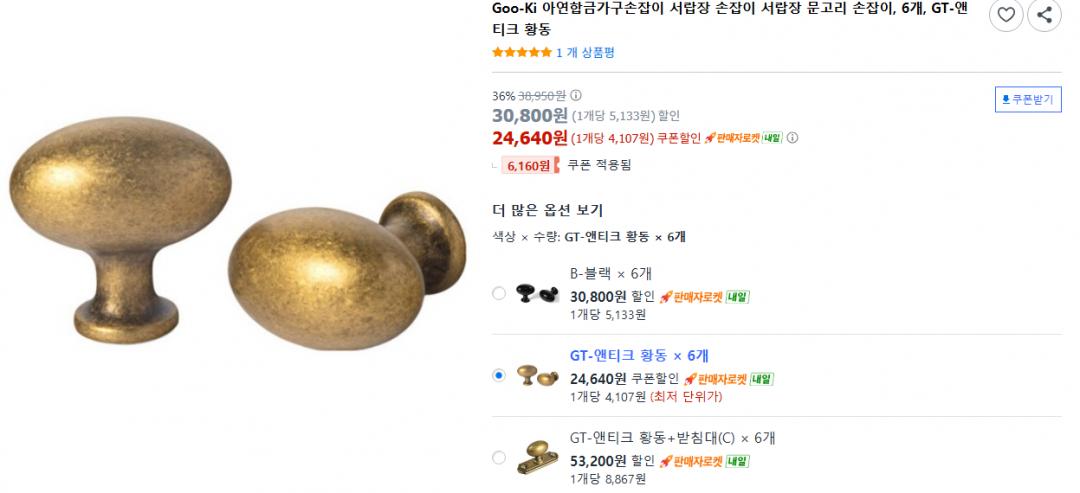 [쿠팡] Goo-Ki 아연합금 서랍장 손잡이 6개 세트(24640원/무배) > 국내핫딜