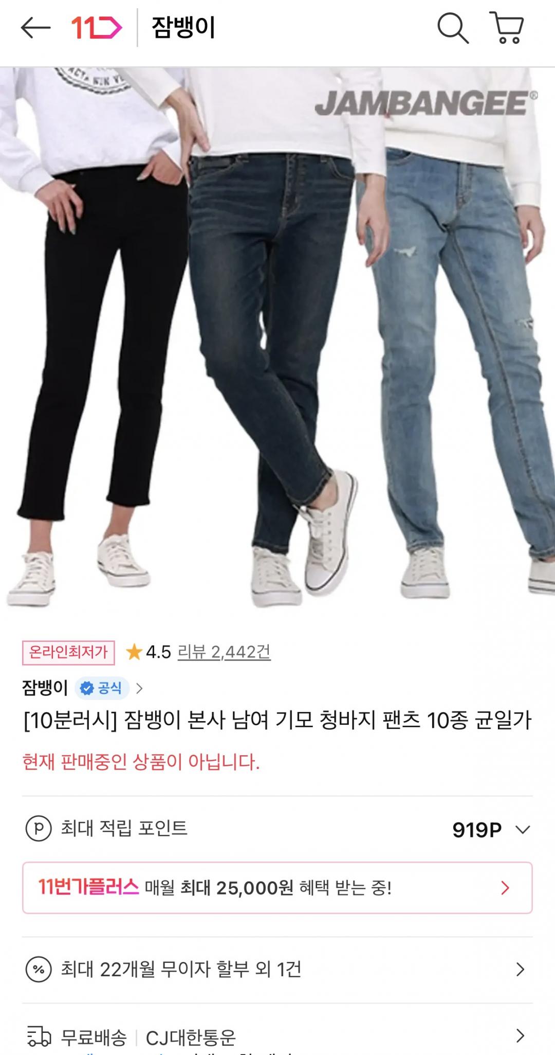[11번가] (10분러시) 잠뱅이 기모 청바지 팬츠 10종 균일가 (12,500원/무료) > 국내핫딜