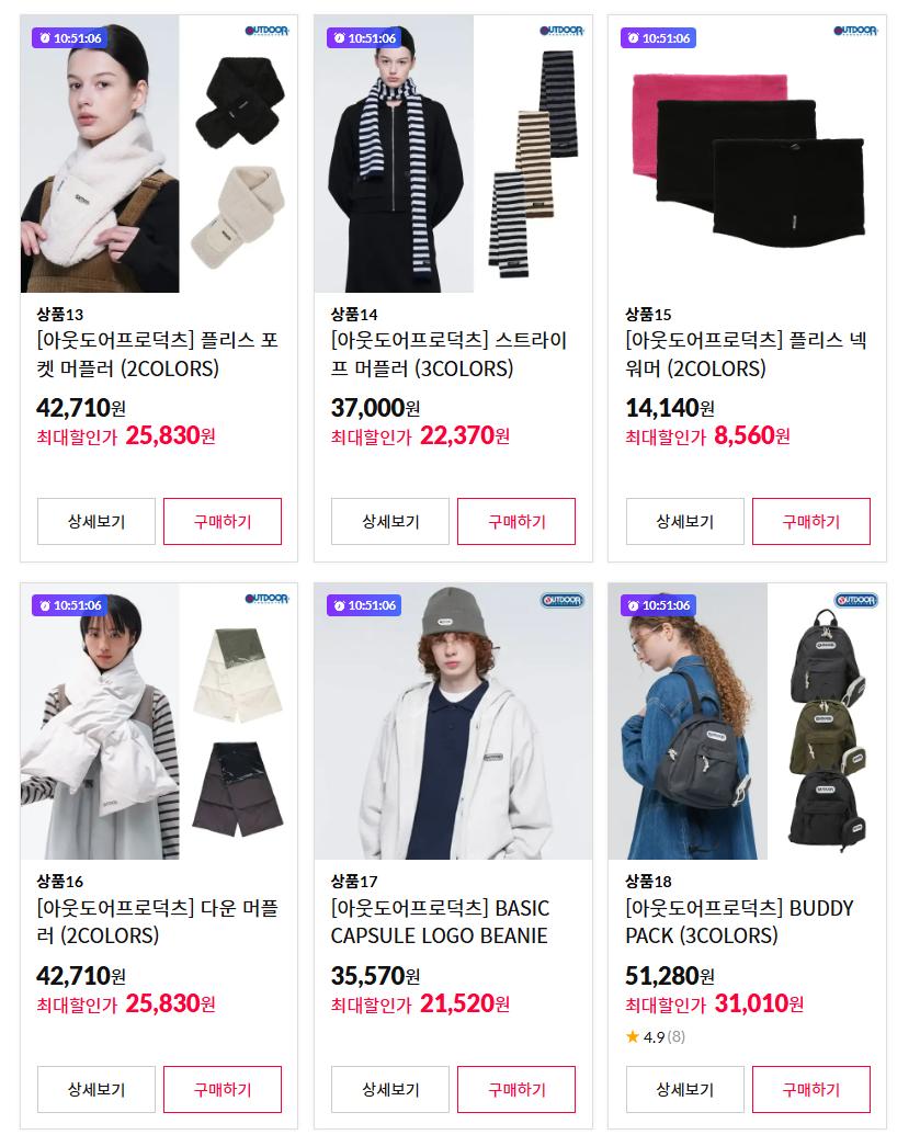 [11번가] 아웃도어프로덕츠 머플러/장갑/비니 외 (다/무료) > 국내핫딜