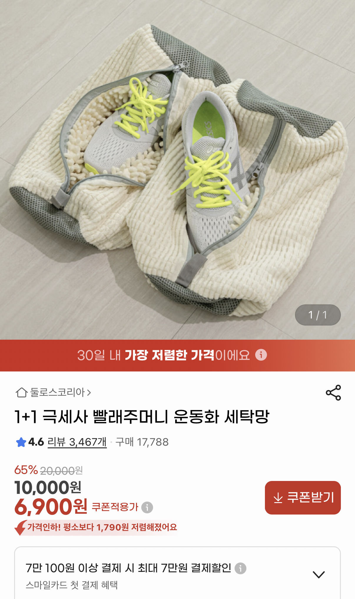 [지마켓] 극세사 빨래주머니·운동화망 1+1 (6,900원/무료)