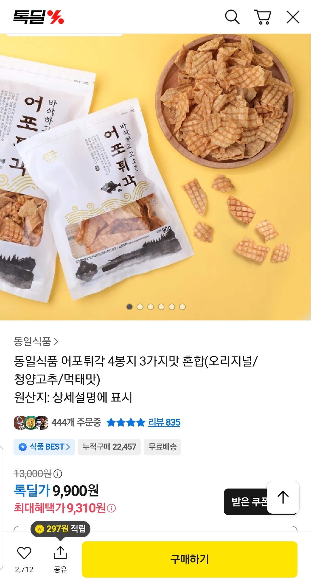 어포튀각은 청양/먹태/오리지날 3종류인데 서로 매력이 달라서 여러봉 교차로 먹기 좋네요