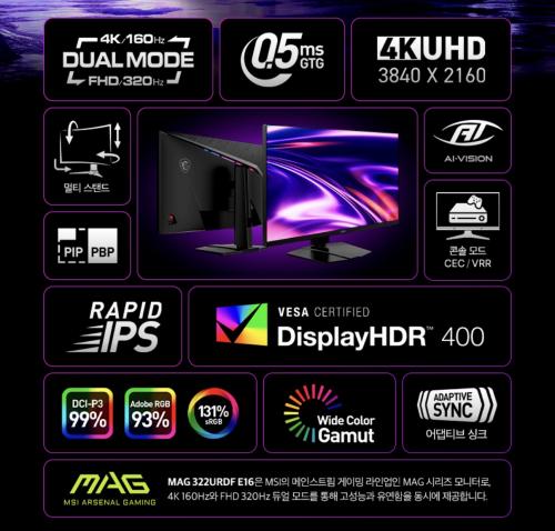 출시가 50짜린데, 많이 싸졌고 320hz 듀얼 모드로 빡겜 가능해요