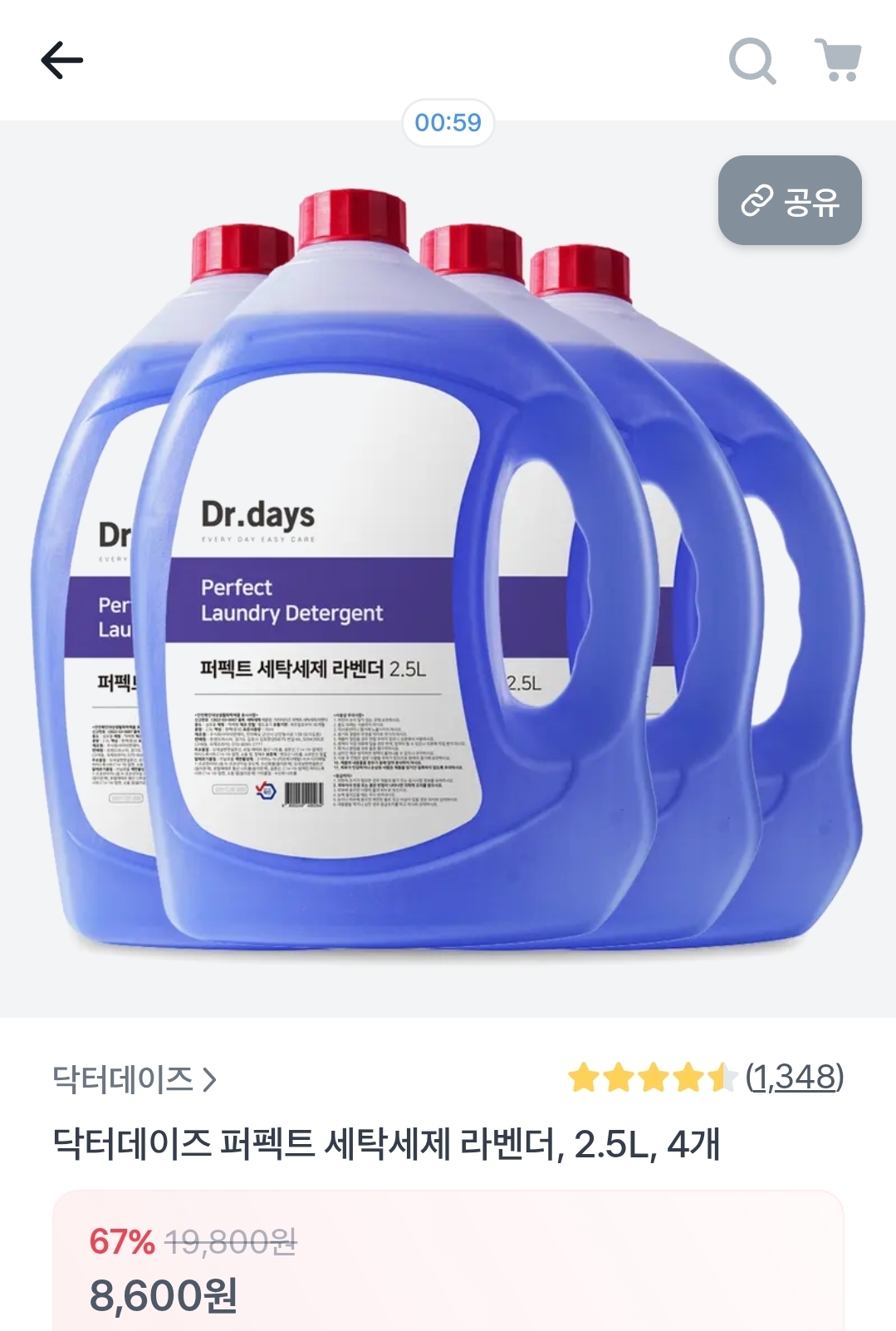[토스] 퍼펙트 세탁세제 라벤더 2.5L 4개 10리터 (8,600원/무료) > 국내핫딜