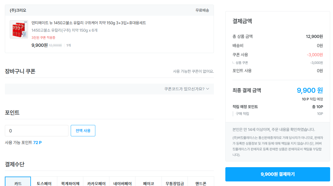 [오늘의 집] 크리오 덴티메이트 1450 고불소 치약 외 구강용품 (9,900원/무료)