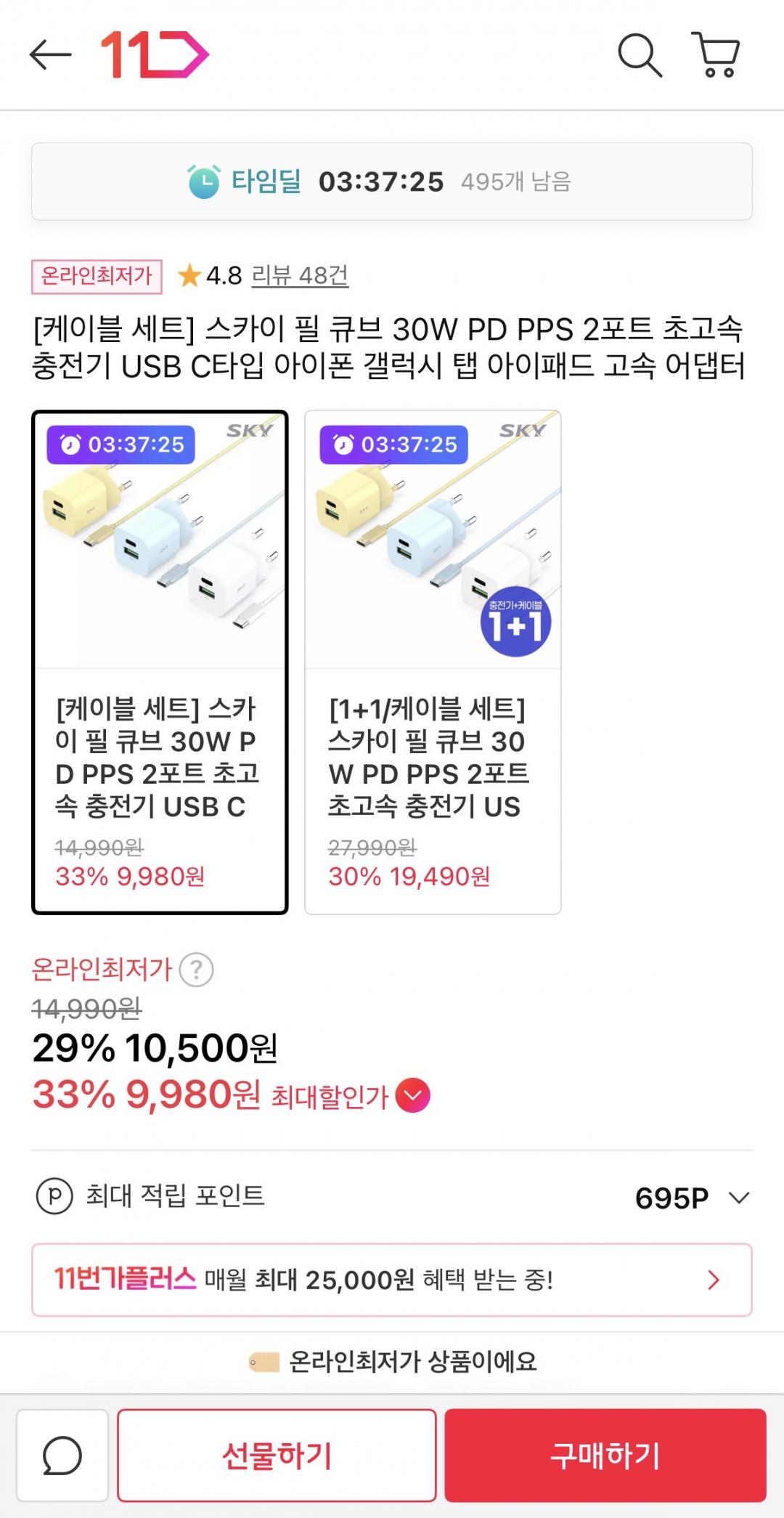 [11번가] 스카이 필 큐브 30W 초고속충전기 (9,980원/무료) > 국내핫딜