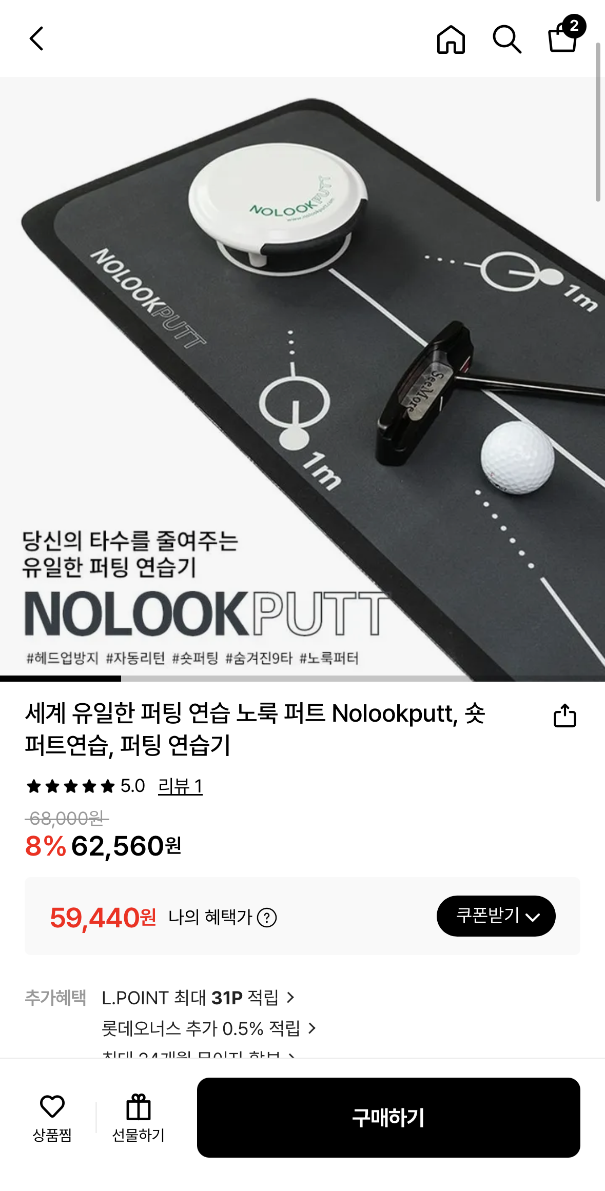 [롯데온] 노룩 퍼트 퍼팅 연습기 (59,440원/무료)