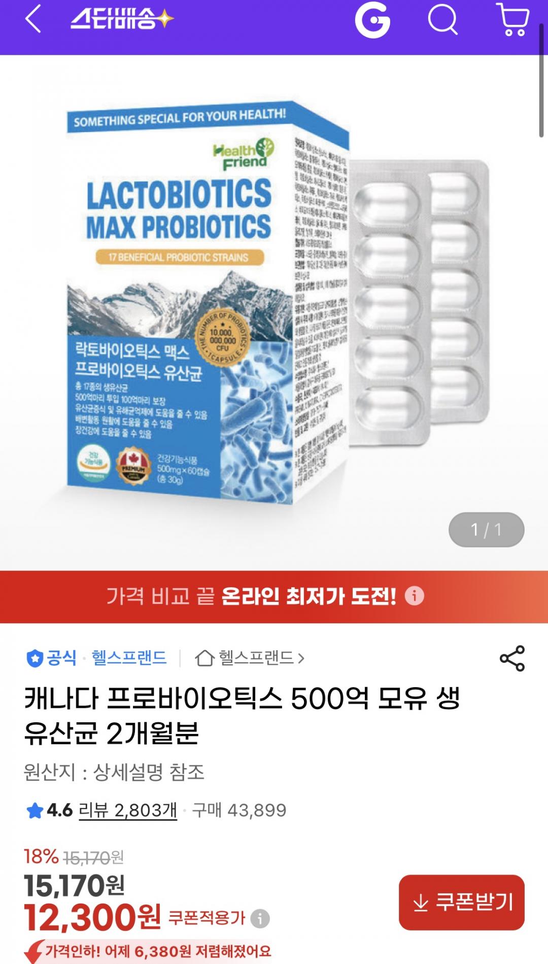 2개월분에 최종가 12,300원 가격 저렴합니다