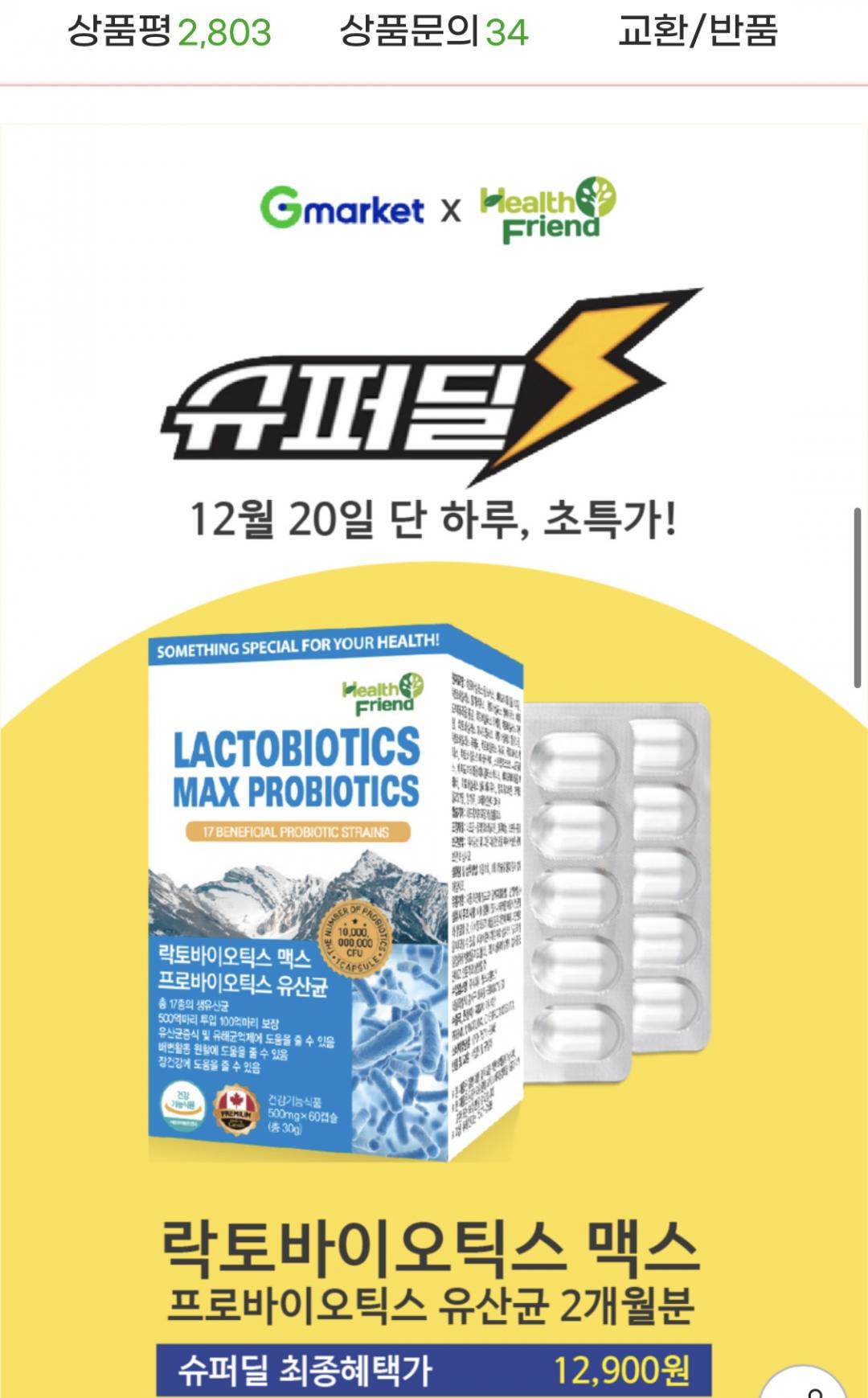 [지마켓] 캐나다 락토바이오틱스맥스 프로바이오틱스 유산균 60캡슐 2개월분 (12,300원/무료) > 국내핫딜