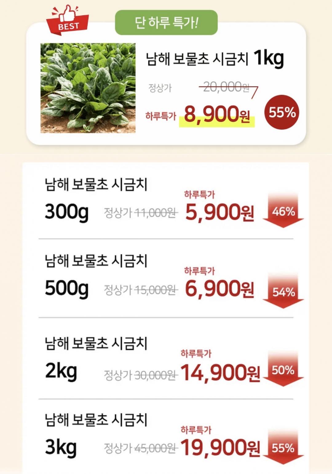 [토스] 남해 보물초 시금치 1kg (8,900원/무배) > 국내핫딜