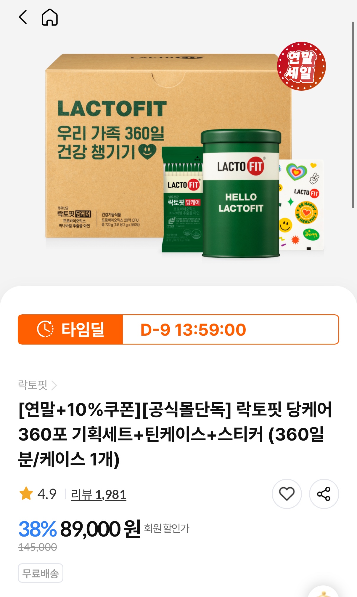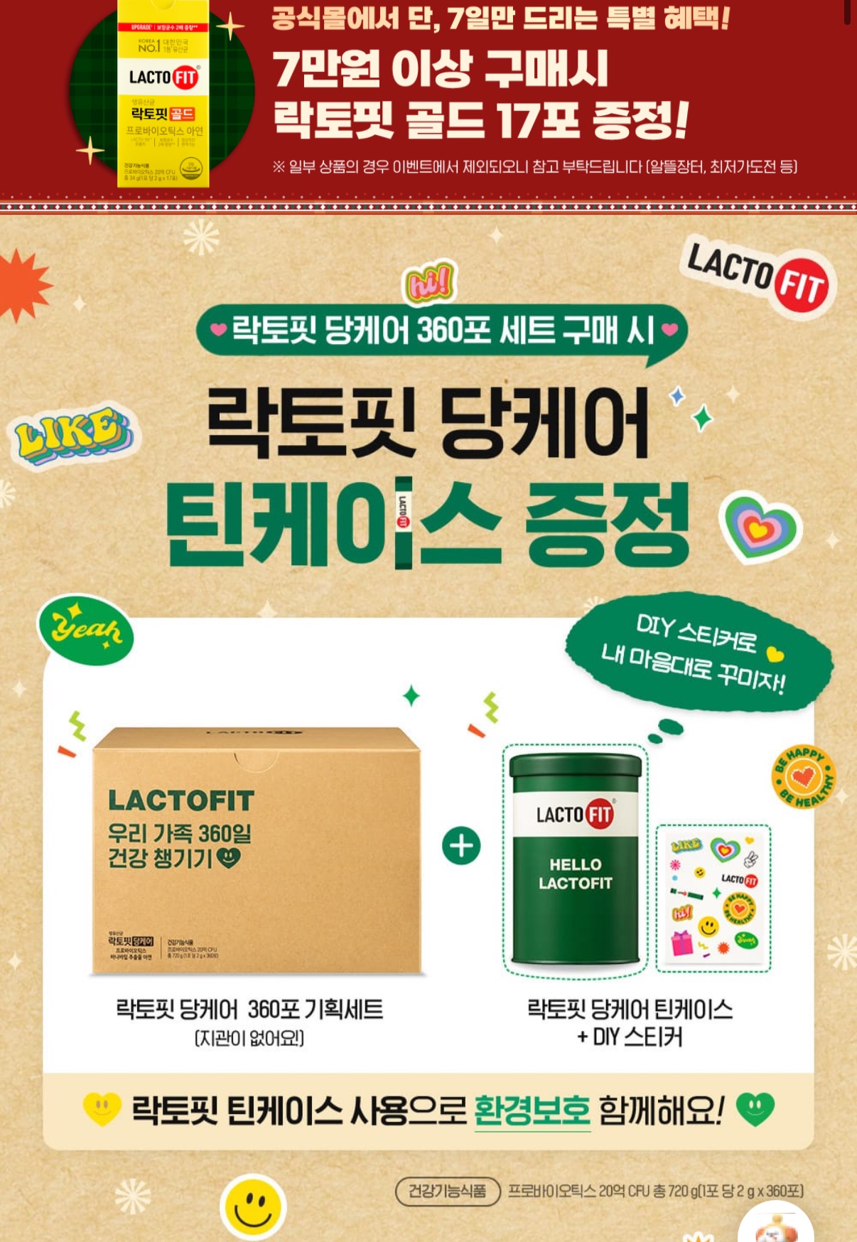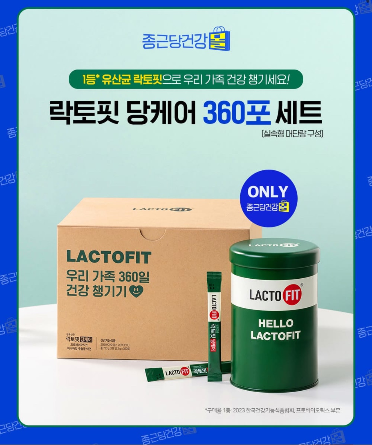 [종근당건강몰] 락토핏 당케어 360포세트+골드 17포 (62,410원/무료)