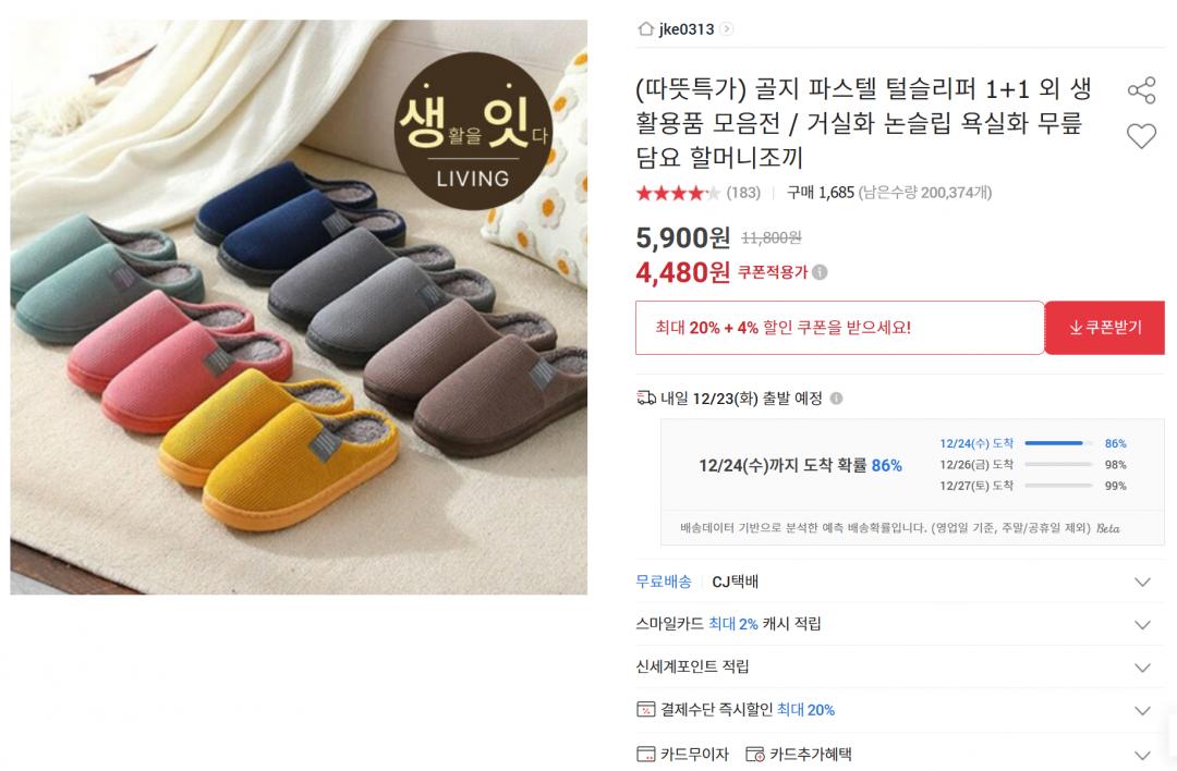 [옥션] 파스텔 털슬리퍼 1+1 (4,480원/무료)