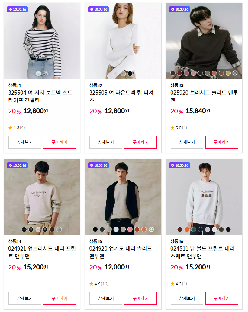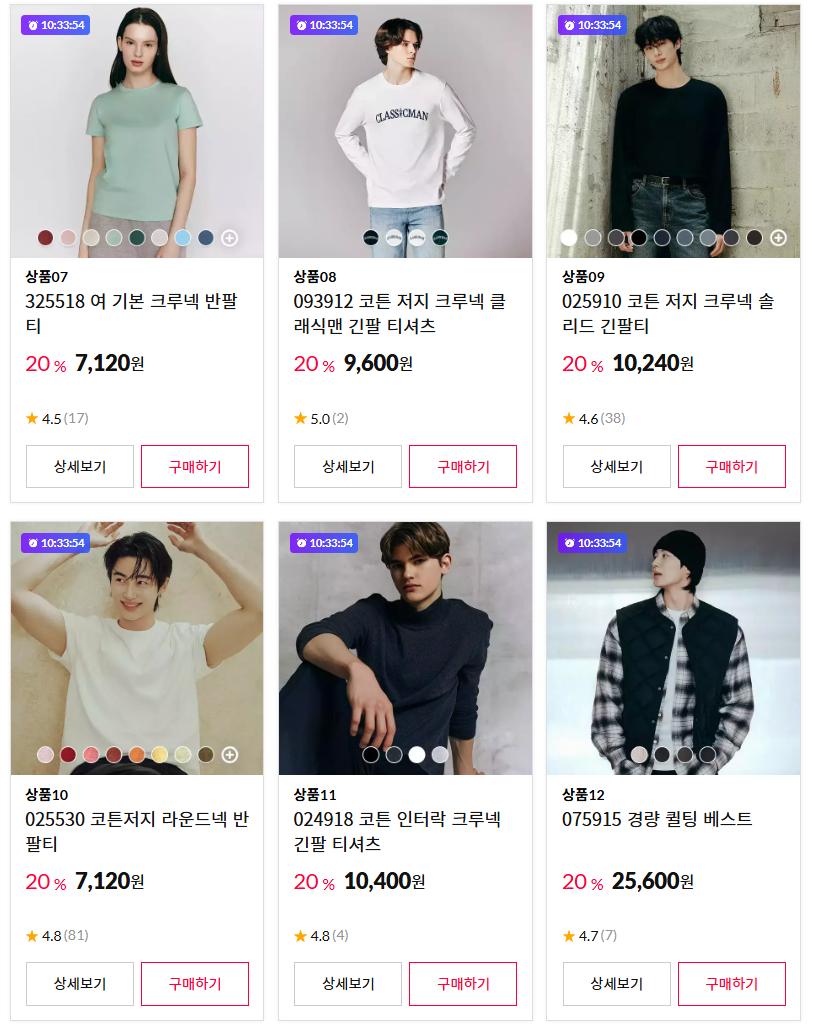 지오다노 F/W 클리어런스 행사로 기본 아이템 위주 구성입니다
